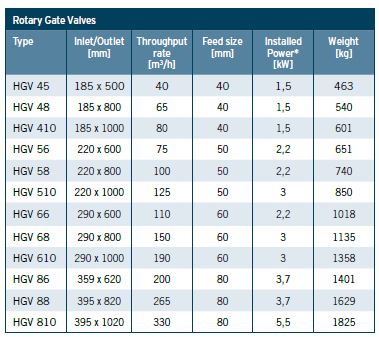 Feed and discharge valves for processing equipment such as dryers, kilns, electrostatic precipitators, bag filters, cyclones, classifiers, hammer mills, ball mills, vertical roller mills etc. - CAPACITY RANGE