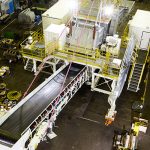 Crushing in the horizontal material flow without any directional change is the basic principle of the HAZEMAG HHI and results in an extraordinary compact design with very high throughput rates. The impact roll crusher is fitted with a modern control, which monitors the input power on the crushing roll as well as on the chain conveyor. This control automatically protects the plant from obstructions and in case of an overload, thus permitting a fully automatic operation of the plant. By means of a height adjustment and speed variation of the crushing roll as well as by changing the chain conveyor’s speed the final product may be influenced.