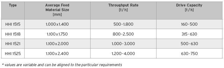 The horizontal impact crusher type HHI basically consists of two machine components: the crushing roll and the chain conveyor.