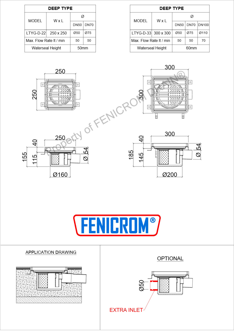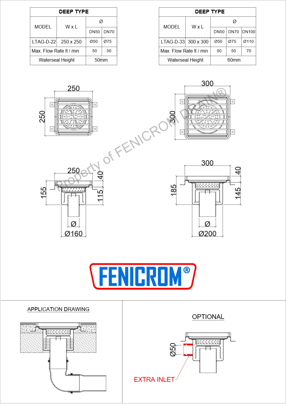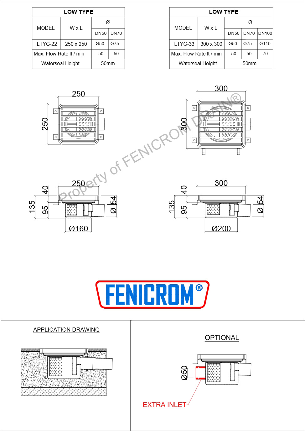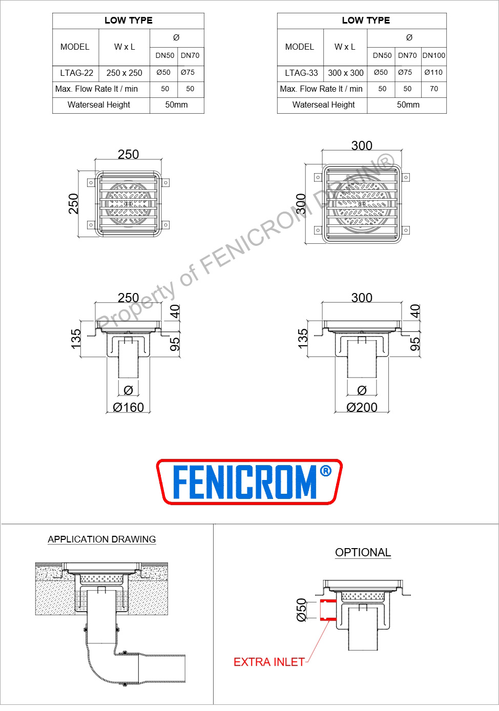 Stainless Steel Floor Drains Model LTAG and LTYG