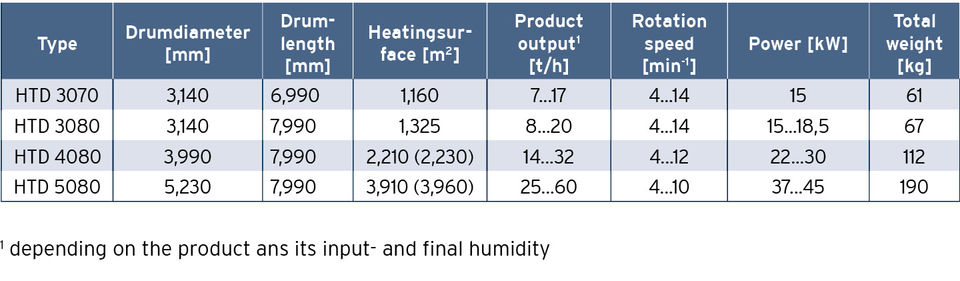 HAZEMAG Tubular Dryers achieve a very long lifeti­me. Their utilization can be optimized in case pro­cess steam is available and the grain size of material to be dried is up to 10 mm.